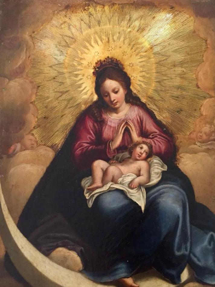 Dipinto antico, Madonna con Bambino dormiente, XVII secolo