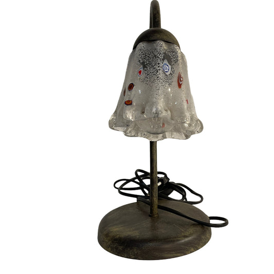 Abat jour vintage, base in ferro, cappello in vetro, a fiore, cone murrine, altezza 30 cm, diametro base 15 cm