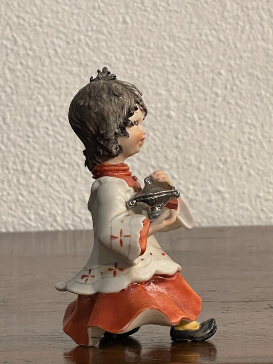 Ceramica Capodimonte raffigurante “Chierichetto”, altezza 13 cm, epoca vintage