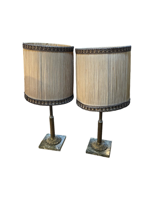 Coppia abat jour vintage, metallo su base di marmo, stile Impero