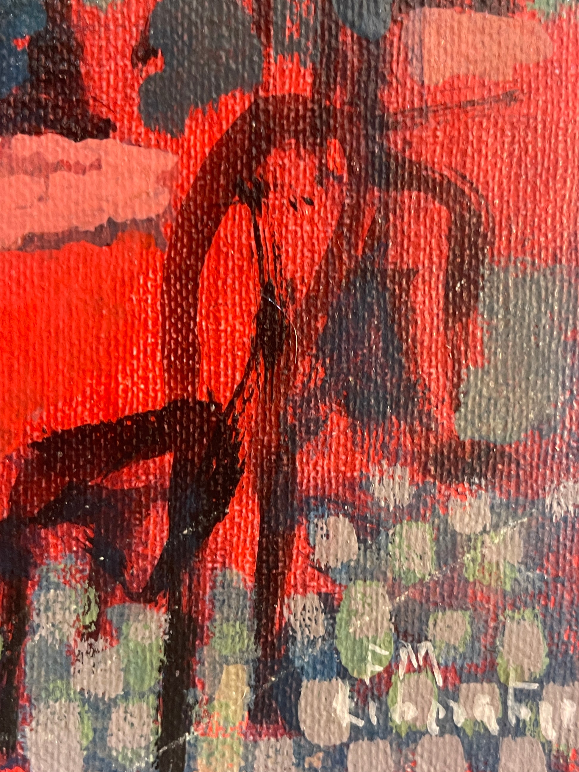 Dipinto olio su tavola, figure in un bar, Liberatore, XX secolo