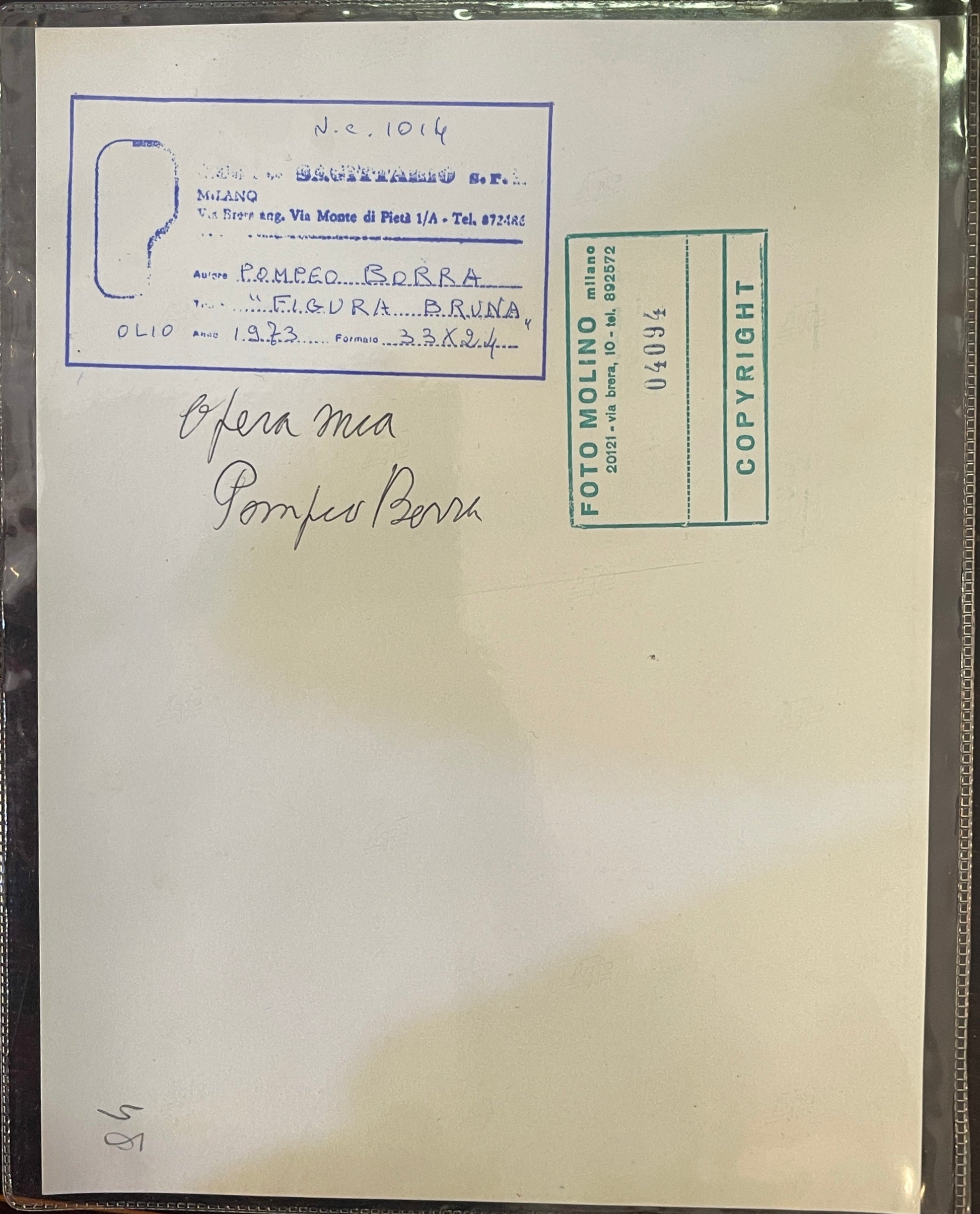 È presente documentazione con riferimenti della galleria dove è stata acquistata l’opera sia sul retro che su fotografia allegata (vedi immagini)